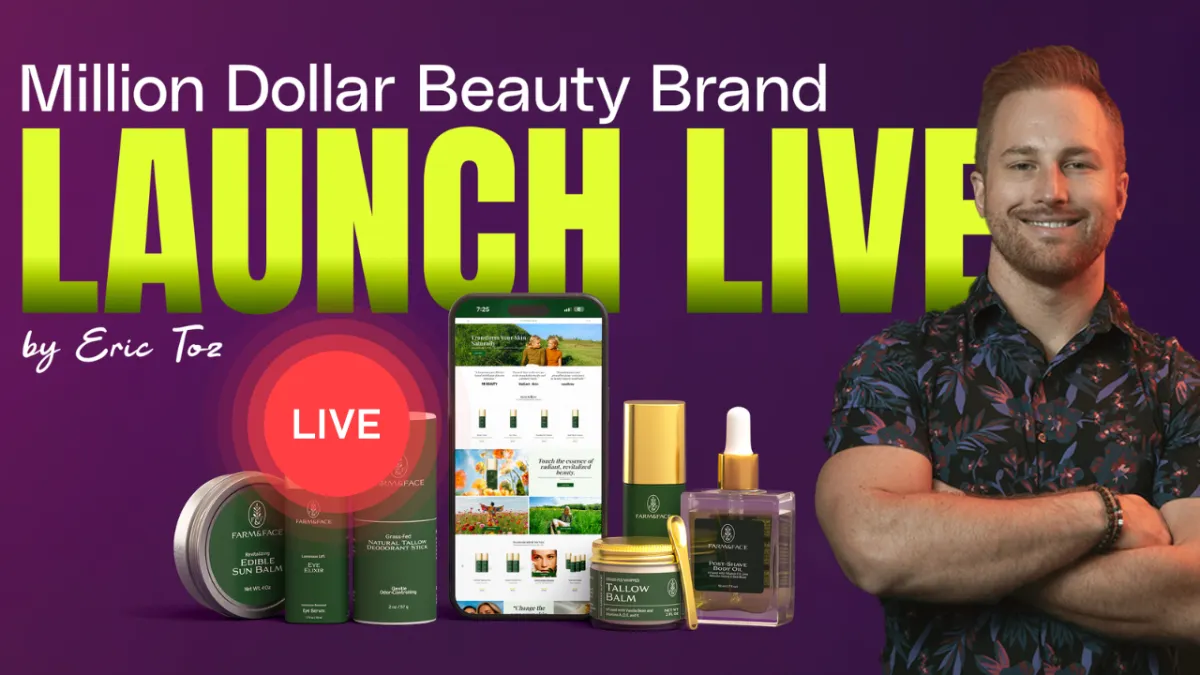 A: The Million Dollar Beauty Brand LAUNCH is Tuesday, October 28th, 2025 at 7:00 PM EST (4:00 PM Pacific). Plan to be with us for the full event - all 4 sessions packed with actionable strategies.